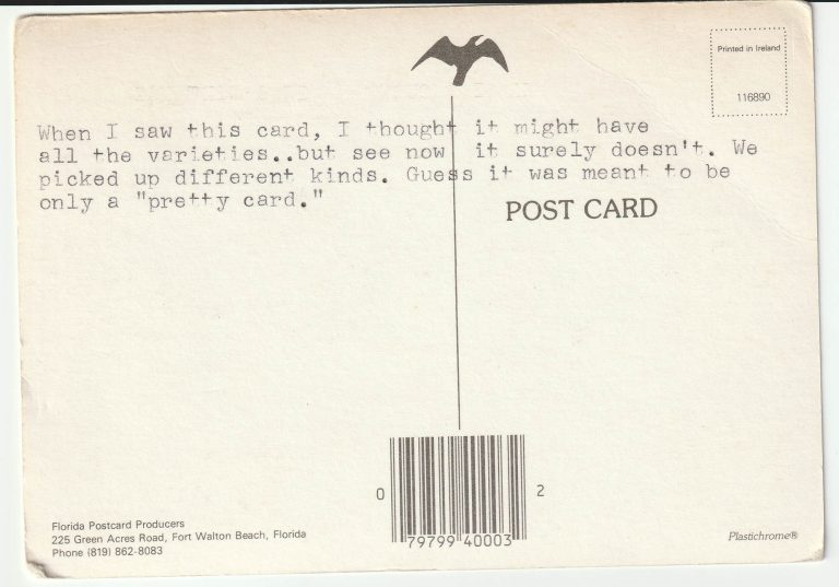I cannot quite explain, but this is my favourite of the lot. The textures. The nearly fading ink with the slants and pulses from a fountain pen. The old worn corners. The irregular cut on the sides and bottom, because why? What’s in the fringes that they so wanted to remove? And then choose to keep the main postcard?